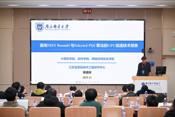 南京邮电大学副教授董建阔在题为“面向NIST Round 4与标准化PQC算法的GPU加速技术探索”的报告中,围绕主流后量子密码算法,系统介绍了面向核心算子的高效并行映射与资源调度的技术路线。